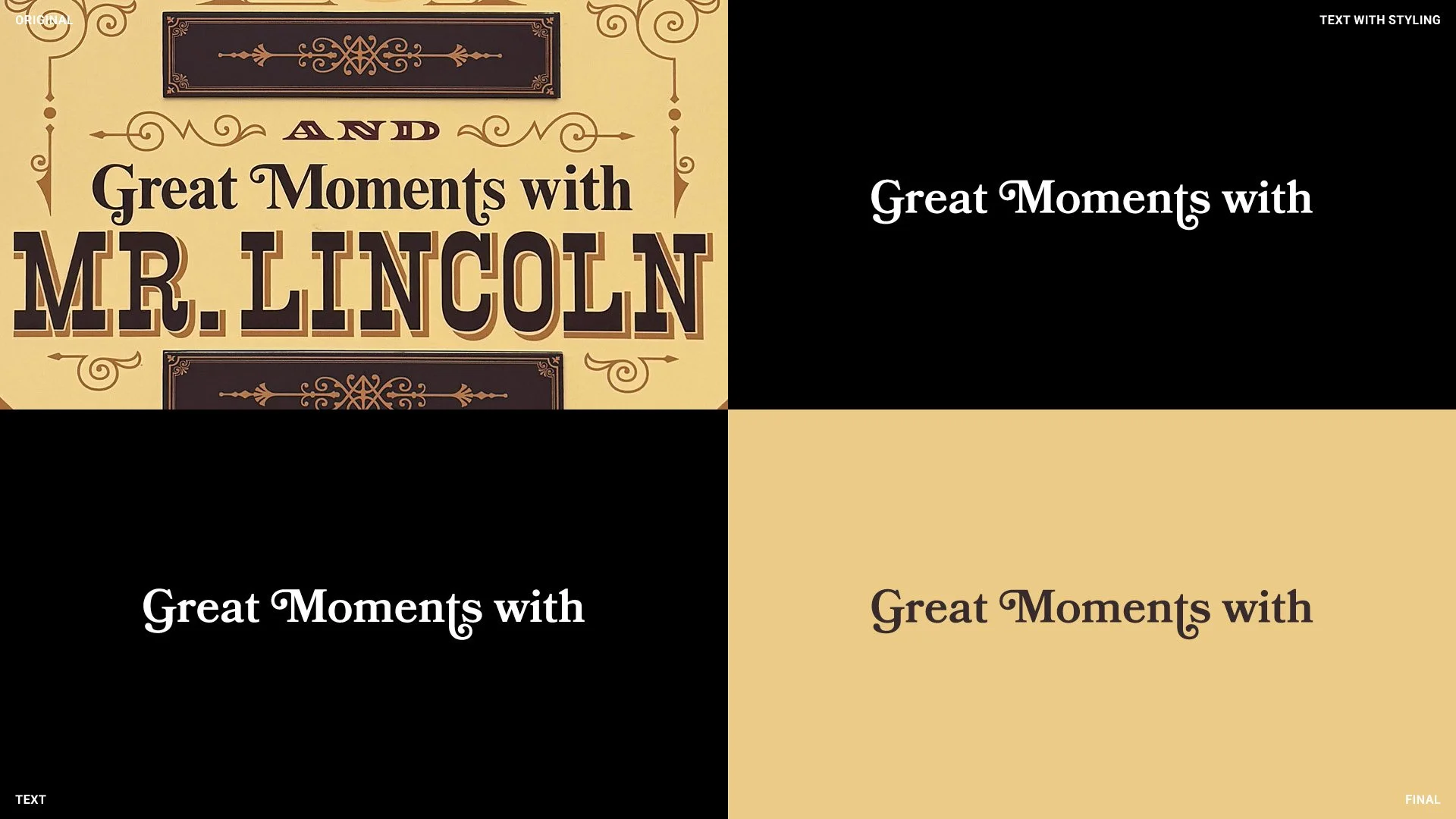 The biggest challenge? Font matching. I spent a long time hunting for fonts that could capture the vintage Americana feel. Fonts are already an infinite rabbit hole — and the original designer likely manipulated type or even custom-built parts of this.